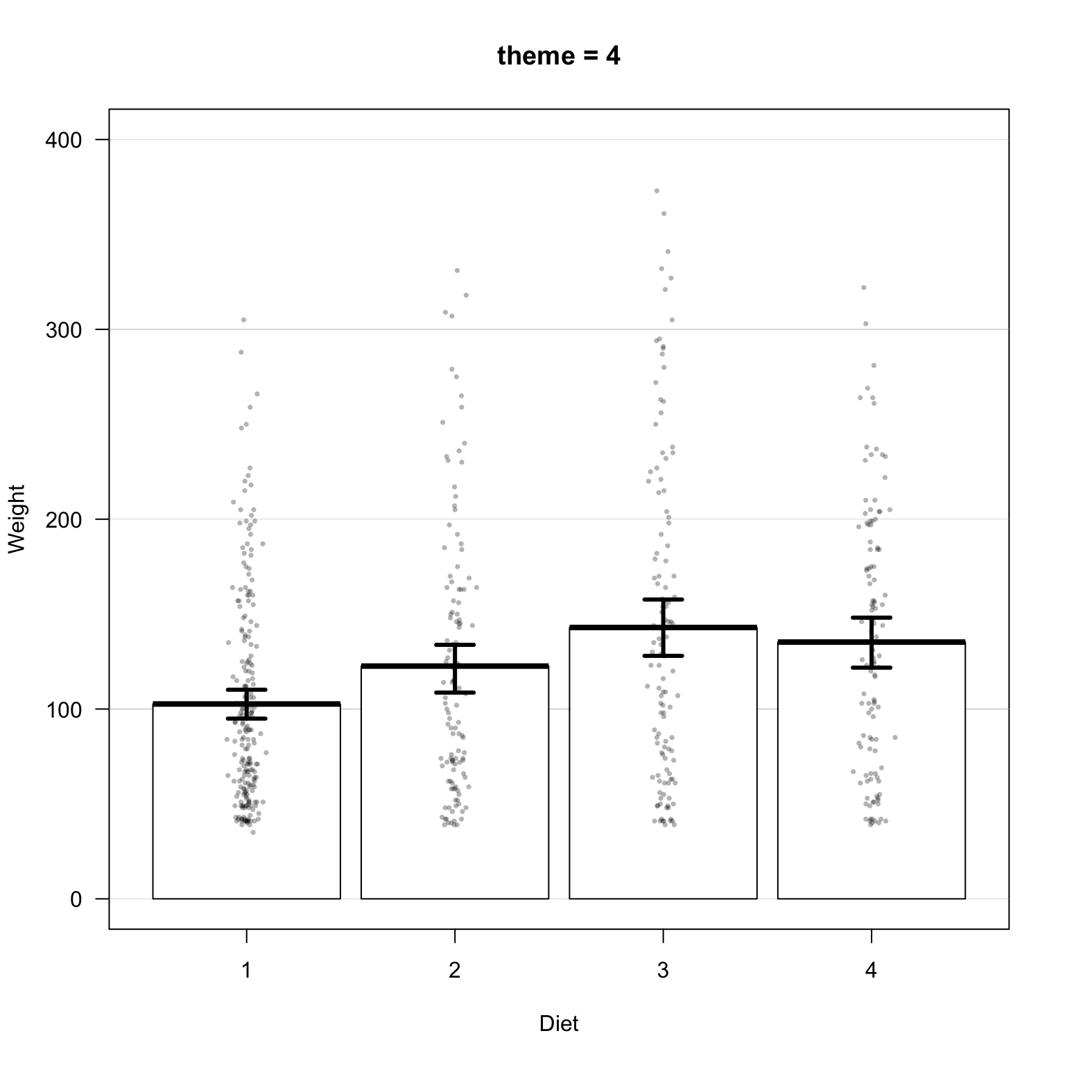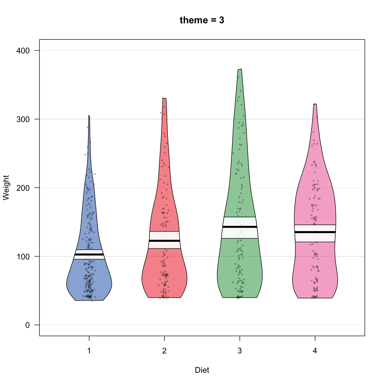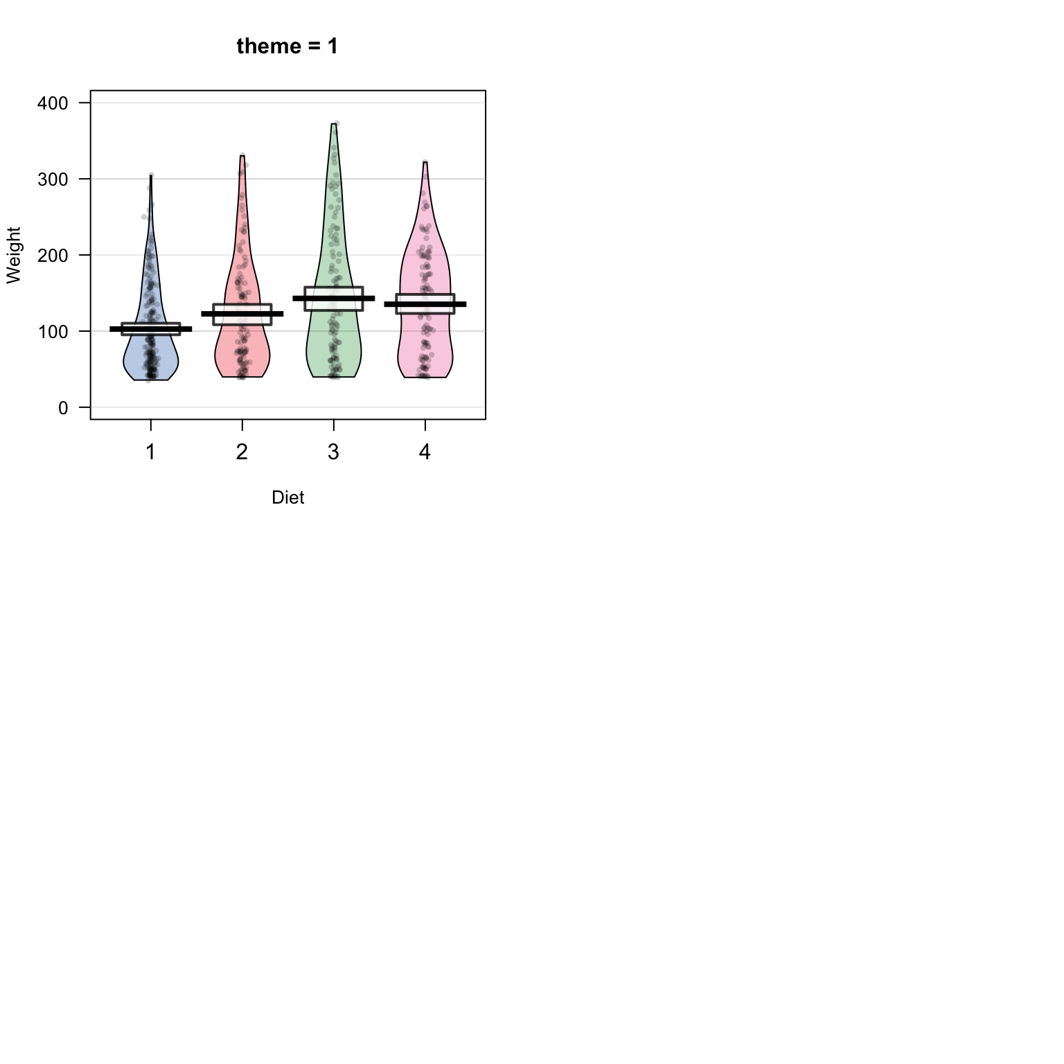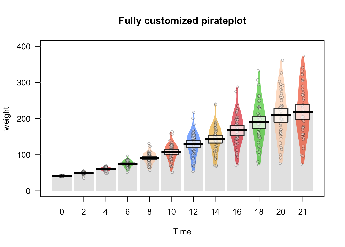 pirateplot(formula = weight ~ Time,